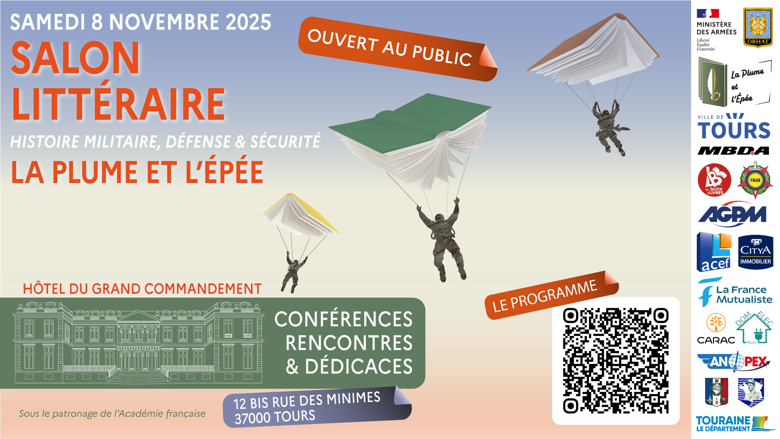 Le prochain salon du livre 2025 se déroulera le samedi 8 novembre 2025 à l’Hôtel du Grand Commandement de Tours.